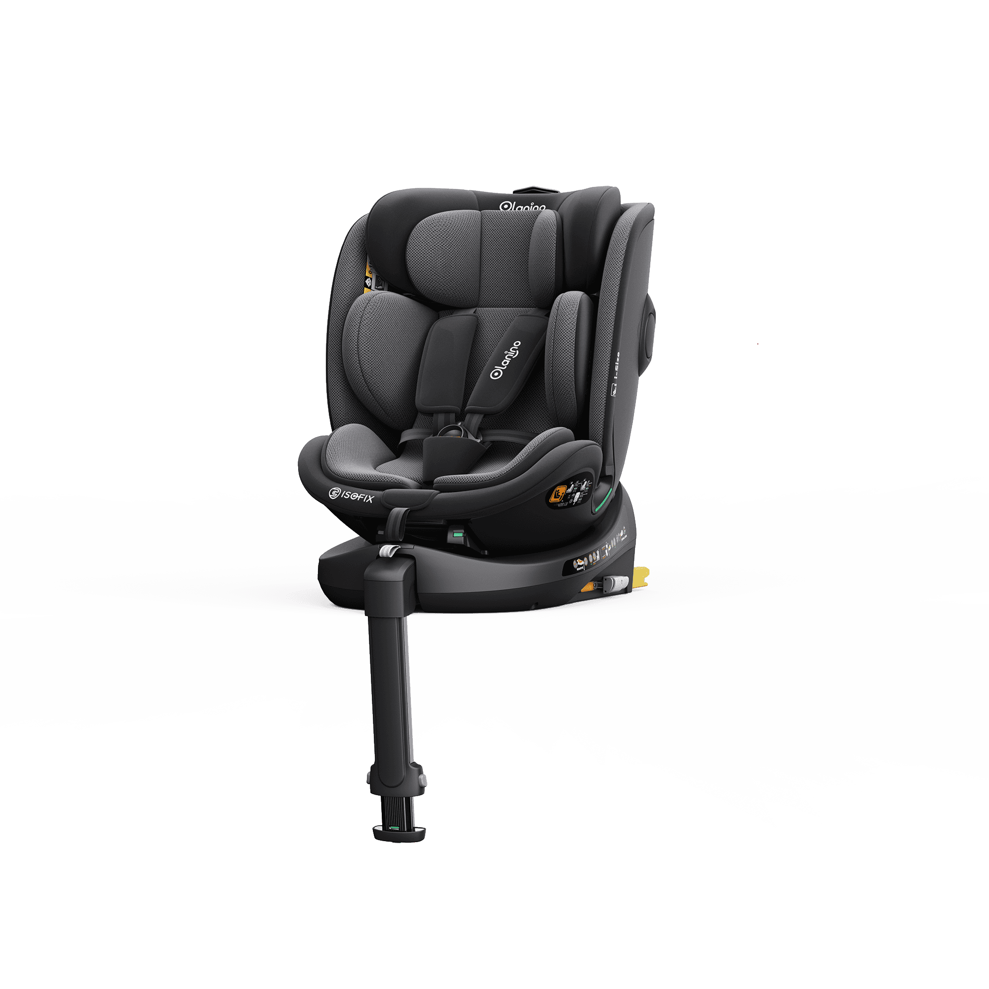 Ghế ngồi ô tô Olanino C015C được phát triển theo tiêu chuẩn an toàn i-Size cao nhất, với thiết kế nhằm mang lại sự an toàn và tiện lợi cho phụ huynh với tính năng xoay 360° kết hợp cùng dây neo trên giúp tăng độ ổn định.